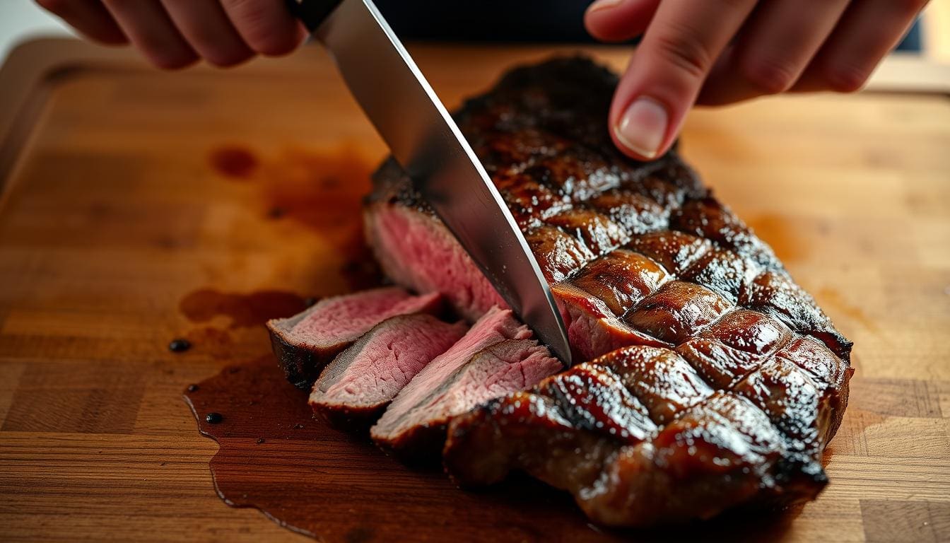 - Slice against the grain – Cut perpendicular to these lines, not parallel. This shortens the muscle fibers, making each bite more tender.