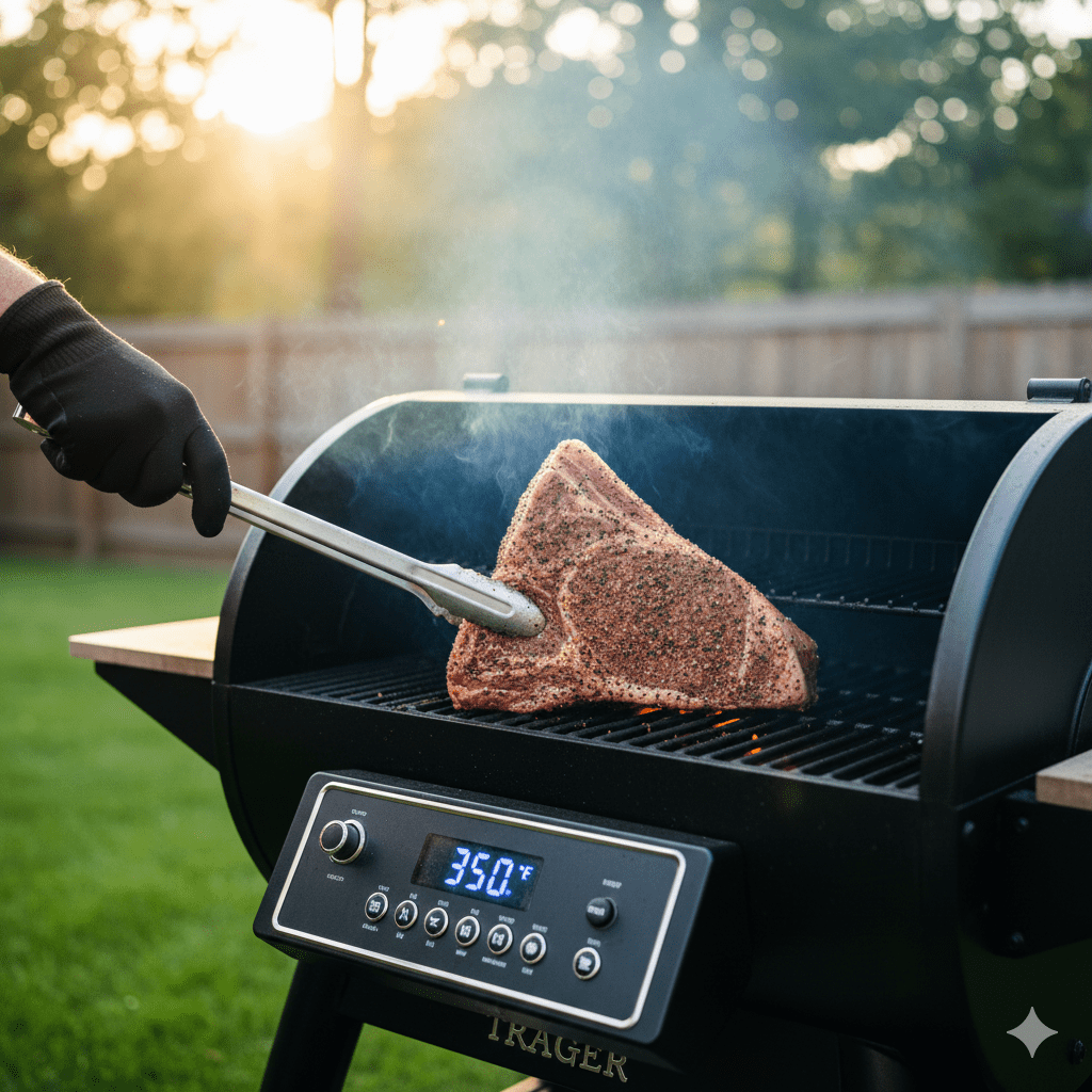 Start by preheating your Traeger grill to 350°F with the lid closed. This typically takes 10-15 minutes. Using hickory, oak, or mesquite pellets will complement the beef flavor nicely.